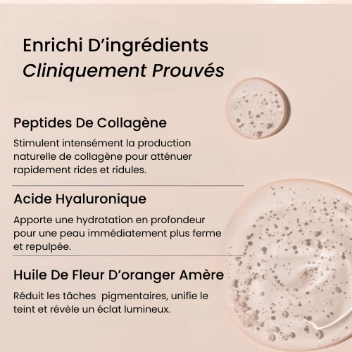 Cela permet aux ingrédients clés — comme l’acide hyaluronique hydratant et les peptides qui soutiennent le collagène — d’atteindre des zones que les crèmes traditionnelles ne peuvent pas toujours cibler. Votre peau paraît ainsi plus lisse, repulpée et rafraîchie au fil du temps.